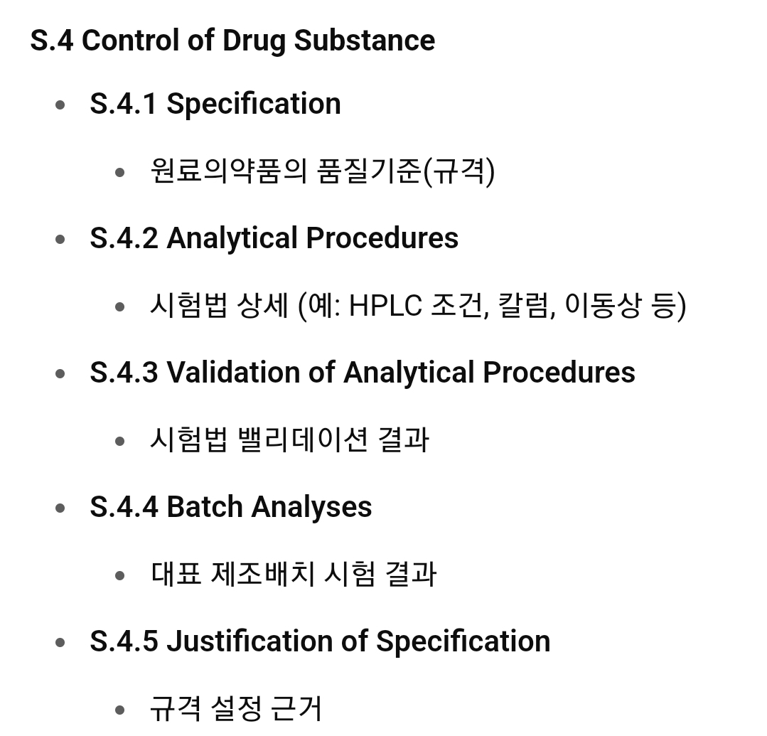DS 공정관리(3.2.S.4)에서는 DS의 시험 규격(release, IPC)의 설정 근거를 언급해야 하고, sampling plan에 대한 정의가 포함되어야 합니다.